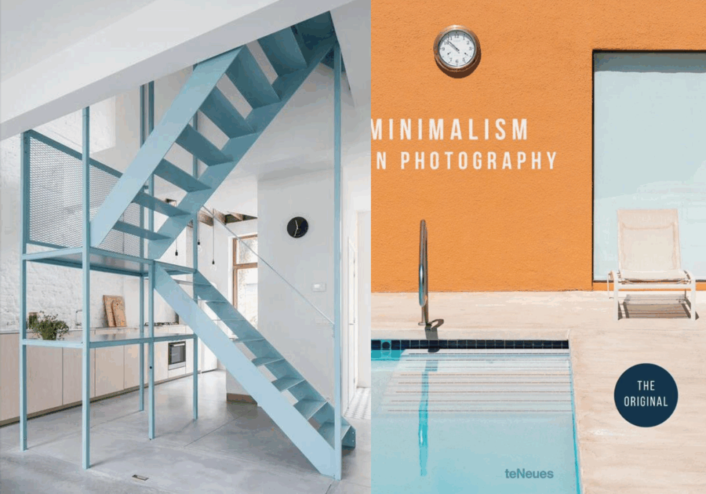 Dette var inspirasjonen for farger/materialer vi ønsket til yttergangen da vi startet renoveringen. Elsket den blå ståltrappen, og fargene på bilde på coveret til boken «Minimalism in photography».