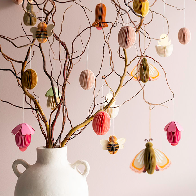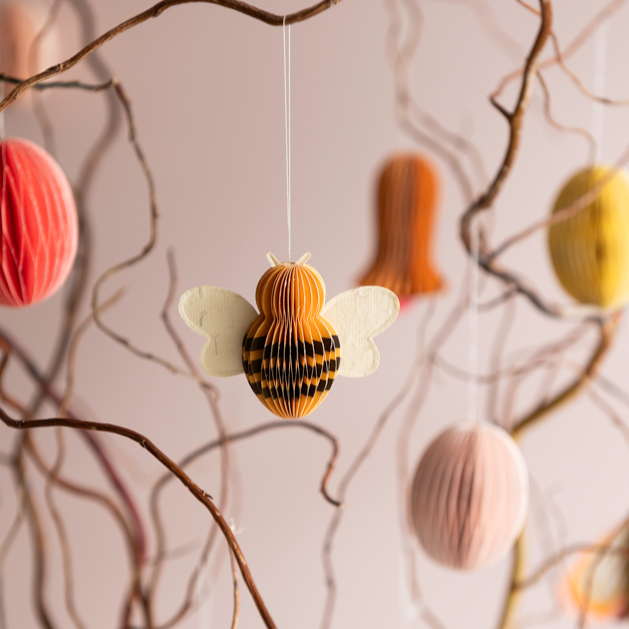Honeycomb bie ornamenter laget i papir fra danske Bungalow.